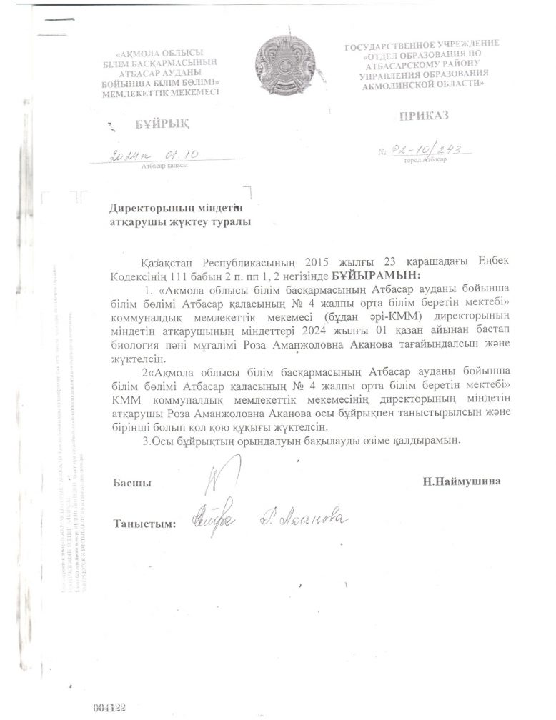 КОММУНАЛЬНОЕ ГОСУДАРСТВЕННОЕ УЧРЕЖДЕНИЕ "ОБЩЕОБРАЗОВАТЕЛЬНАЯ ШКОЛА № 4 ГОРОДА АТБАСАР ОТДЕЛА ОБРАЗОВАНИЯ ПО АТБАСАРСКОМУ РАЙОНУ УПРАВЛЕНИЯ ОБРАЗОВАНИЯ АКМОЛИНСКОЙ ОБЛАСТИ"