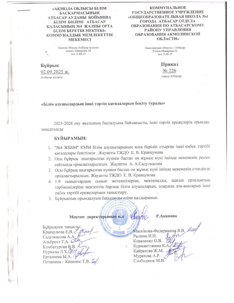 КОММУНАЛЬНОЕ ГОСУДАРСТВЕННОЕ УЧРЕЖДЕНИЕ "ОБЩЕОБРАЗОВАТЕЛЬНАЯ ШКОЛА № 4 ГОРОДА АТБАСАР ОТДЕЛА ОБРАЗОВАНИЯ ПО АТБАСАРСКОМУ РАЙОНУ УПРАВЛЕНИЯ ОБРАЗОВАНИЯ АКМОЛИНСКОЙ ОБЛАСТИ"