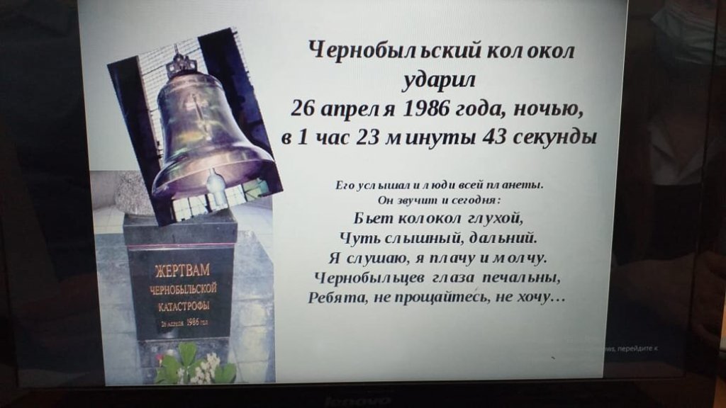 Чернобыль-это память на много веков.35лет назад со дня аварии на Чернобыльской АЭС.Авария расценивается как крупнейшая за всю историю атомной энергетики.26апреля для учащихся ОШ4проведен классный час на тему"Чернобыль-трагедия,подвиг,предупреждение".Цель классного часа:способствовать формированию уважительного отношения к людям,выполнившим свой человеческий долг в минуты страшной Чернобыльской трагедии ,развивать умение сопереживать другим людям и по достоинству оценивать их вклад в жизнь страны.