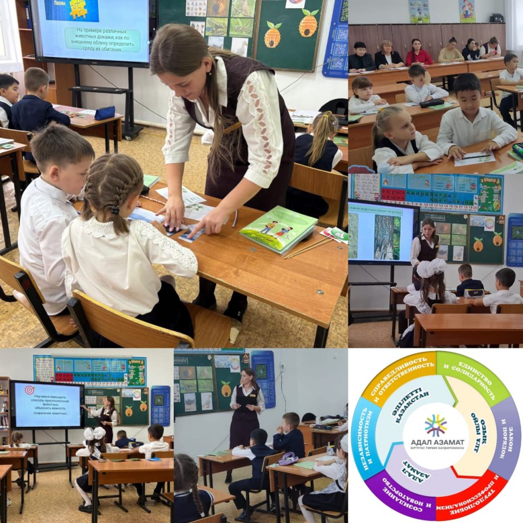 Сабақ барысында оқушылар пікірталастарға белсенді қатысты, топтарда жұмыс істеді, жұмбақтар шешті, иллюстрацияларды қарастырды және практикалық тапсырмаларды орындады. Балалар өз білімдерімен қызығушылықпен бөлісті және жануарлар әлемінің әртүрлілігі туралы жаңа фактілерді ашты.