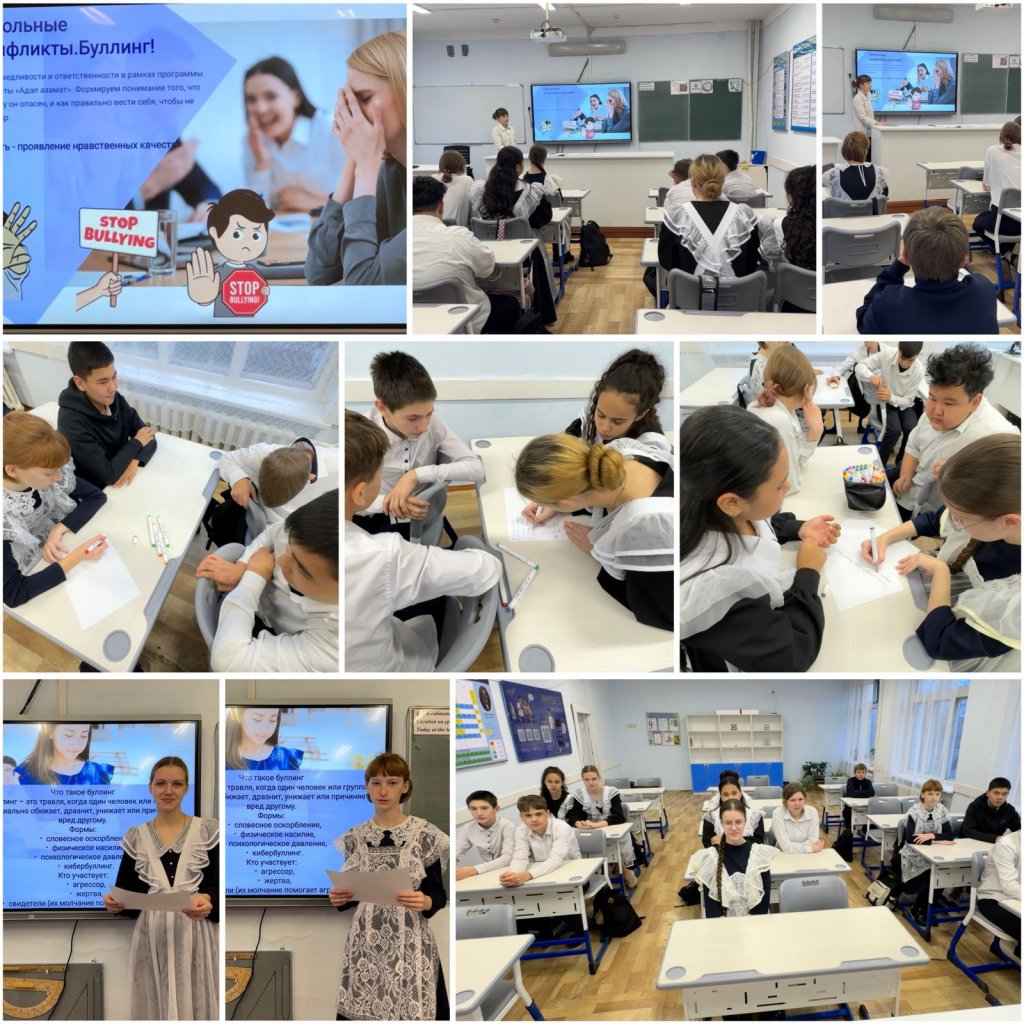 Тәрбие сағаты барысында оқушылар буллингтің түрлі түрлерімен танысып, жанжалдардың туындау себептері мен олардың ықтимал салдарын талқылады. Ерекше назар бақылаушылардың рөліне аударылды — оқиғаға тікелей қатыспайтын, бірақ жәбір көрген оқушыға қолдау көрсету немесе ересектерден көмек сұрау арқылы буллингті тоқтатуға мүмкіндігі бар адамдарға.