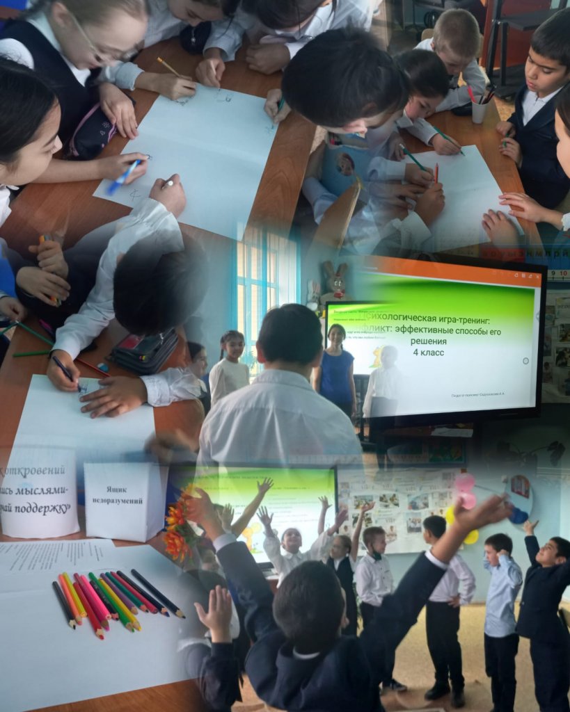 2025 жылғы 25 қарашада "№4 ЖББМ" КММ-де психология апталығы аясында 4 сынып оқушыларымен "Конфликт: оны шешудің тиімді тәсілдері" психологиялық ойын-тренингі өткізілді.