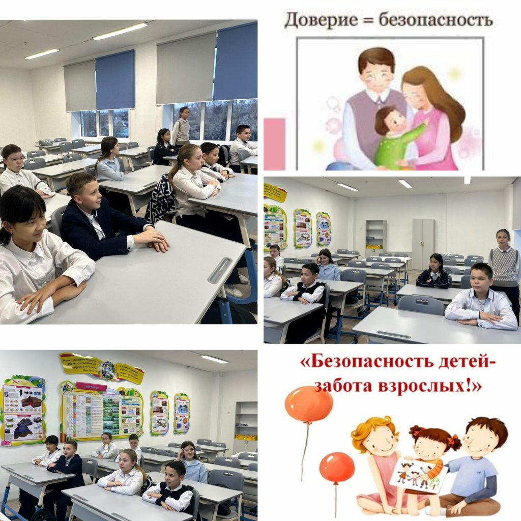 Сабақ барысында оқушылар отбасындағы сенімді қарым-қатынастың маңызы, қиын жағдайларда көмек сұрау жолдары және жеке қауіпсіздік шаралары туралы пікір алмасты. Оқушылар белсенділік танытып, мысалдар келтіріп, ата-ананың бала қауіпсіздігін қамтамасыз етудегі рөлі туралы ой бөлісті.