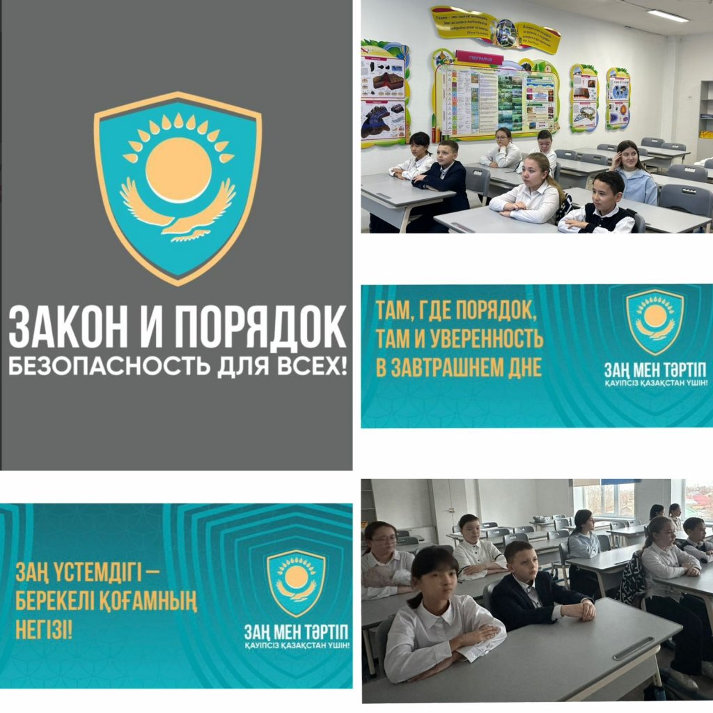Единая «Адал Азамат» бағдарламасын іске асыру аясында «Заң және тәртіп» тұжырымдамасына сәйкес «№4 жалпы білім беретін мектеп»КММ оқушылары арасында профилактикалық іс-шаралар жүргізілуде. 1–9 сынып оқушылары арасында заңдарды сақтау, жауапкершілік және құқықтық мәдениеттің маңыздылығы туралы тақырыптық әңгімелер өткізілді. Апта сайын өтетін «Қауіпсіздік сабақтарында» оқушылар азаматтардың негізгі құқықтары мен міндеттерімен танысып, күнделікті өмірден алынған мысалдарды талдайды. Өткізілген «Заң және менің құқықтарым» іс-шаралары құқықтық сауаттылықты арттырып, тәртіпті нығайтып, жауапты әрі қауіпсіз мінез-құлық қалыптастырады.