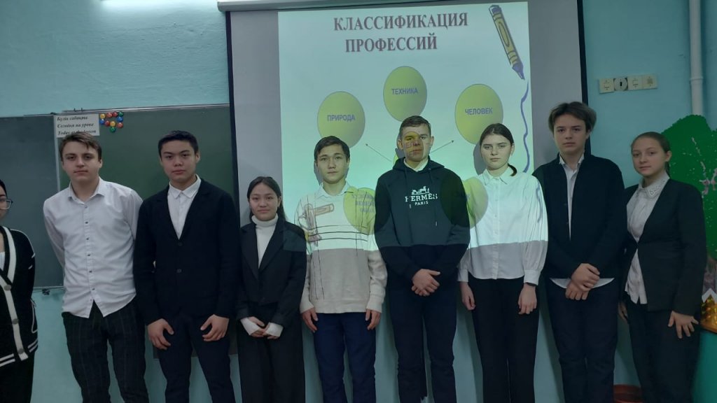 2023 жылғы 6 желтоқсанда "ОМ 4" КММ 9-сынып оқушылары үшін сынып жетекшісі Курмангожина К.А. оқушылардың кәсіптер әлемі туралы білімдерін кеңейту, жасөспірімдердің жеке өзін-өзі анықтаудың өзіндік перспективалары туралы ойларын ынталандыру мақсатында "Менің болашақ мамандығым" тақырыбында сынып сағатын дайындады.